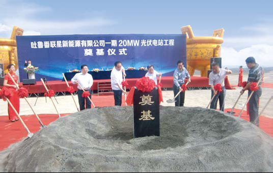 新疆吐鲁番联星新能源一期项目规划装机容量4 0 M W p , 一期建设2 0MWp,位于吐鲁番市东北约15km 处荒漠戈壁滩。采用多晶硅组件 固定倾角安装方式,采用220 KV并网送出,年均发电量2760万度。本项目总投资约2亿元,由新疆吐鲁番联星新能源有限公司出资和运行管理,中节能绿洲负责EPC总包,2013年5月并网运行。