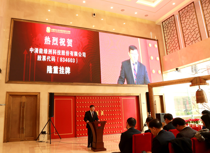 2016年2月26日,中清能绿洲科技股份有限公司(股票简称:中清能 股票代码:834603)挂牌敲钟仪式在全国中小企业股份转让系统公司隆重举行。董事长代存峰在上午11点敲响了挂牌金钟,标志着中清能绿洲正式登陆资本市场,翻开了公司发展历程的崭新篇章。