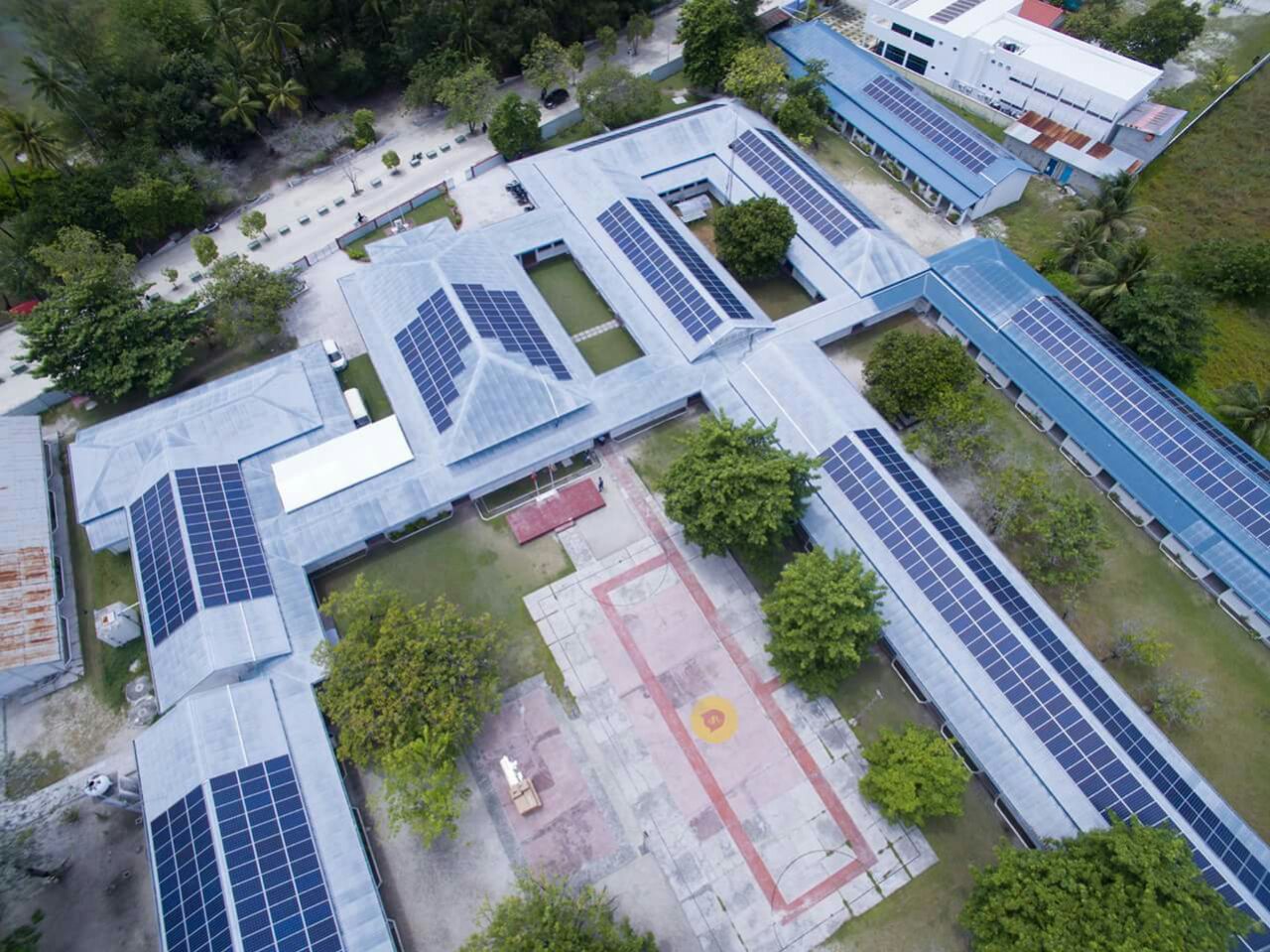 该项目是马尔代夫实施的第一个多能互补智能化微电网项目,由马尔代夫国家能源部投资,世界银行资助。项目基于558KWp屋顶光伏电站和1MWp柴油发电机组联合供电的综合解决方案,采用先进的智能化复合能源供给控制系统实时动态