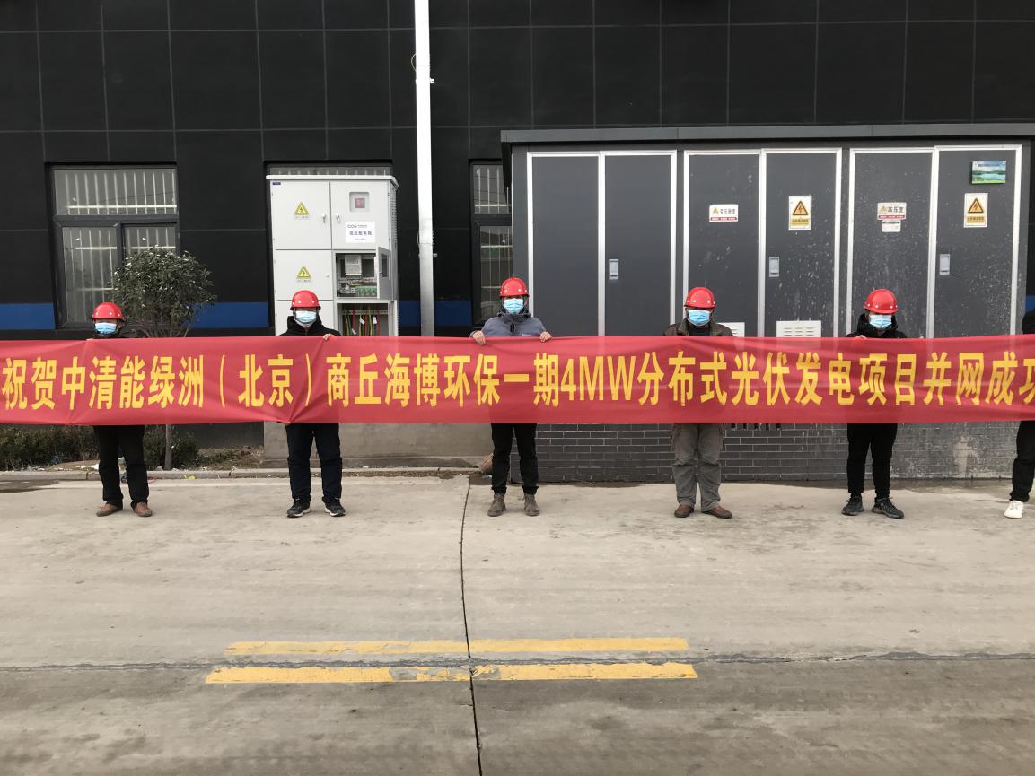 2020年12月29日,中清能绿洲河南商丘海博环保电镀产业园一期4MWp分布式光伏发电项目正式并网。